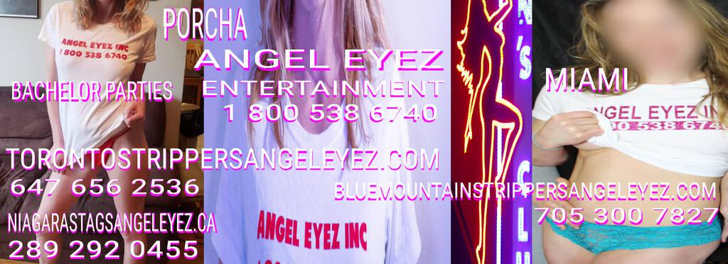 Stripper agency with Verified Strippers wearing Angel eyez T-Shirts. We have parties all over Ontario.