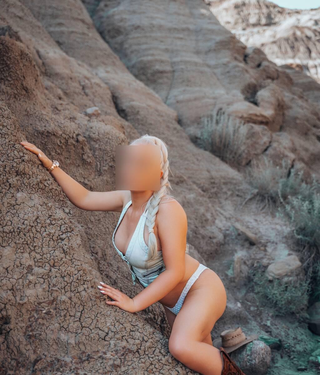 * European mix, blonde hair, 32DD, Fit body, tanned skin