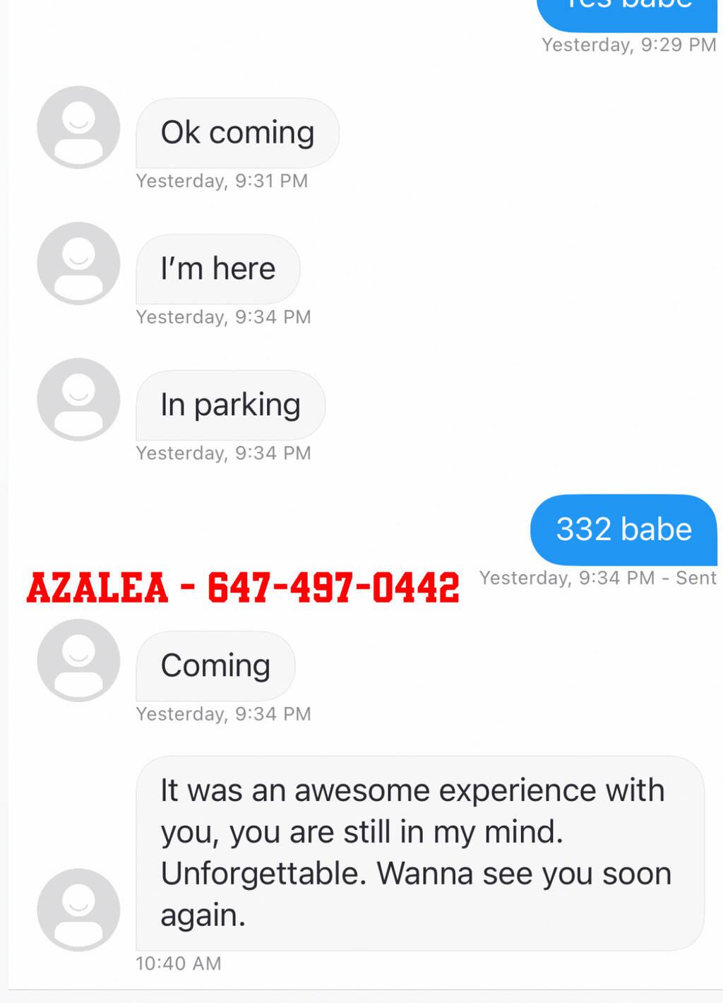 Heyyyy guys! I'm Azalea and I can't wait to meet some lucky guys in town! I'm new to the city and I would love for you to welcome me. My goal isΒ toΒ pleaseΒ yourΒ needs and giveΒ youΒ theΒ bestΒ unforgettable experience that will leave you wanting more. I'm wet, ready and I'm always downΒ for a party ![]()